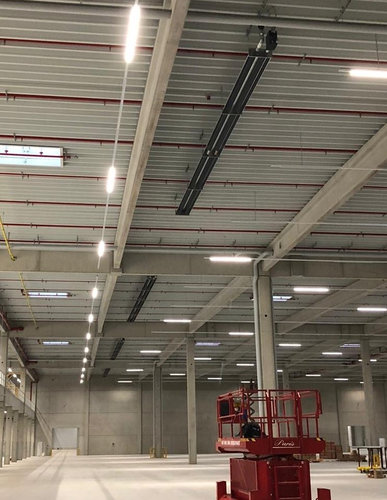 Eine komplexe Anlage installierte Vacurant in Bremen: ein Hybridsystem für ein Logistikzentrum mit 80.000 m2 Fläche. Das Objekt umfasst acht Hallen mit je 10.000 m2. Insgesamt wurden 56 Wärmepumpen mit zusammen 1400 kW Leistung installiert, um die bestehenden 32 Dunkelstrahler zum zweiten Wärmeerzeuger zu degradieren. Heiz- und Kühlprozesse werden bedarfsgerecht gesteuert; die implementierte Leittechnik (GLT) hat Schnittstellen zu allen wichtigen Komponenten. Der Investor legte u. a. fest, dass die Anlagen die neuen Schallgrenzwerte nach GEG einhalten müssen. Bauherr des Objektes ist der international agierende Investor Baytree. Mieter ist ein Dienstleister für Mercedes Benz.
